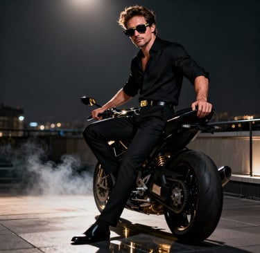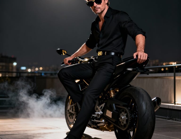Leather. Night. Motion. Reflection.